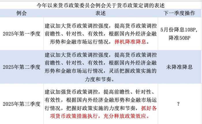 三季度例会提出,根据国内外经济金融形势和金融市场运行情况,把握好政策实施的力度和节奏,抓好各项货币政策措施执行,充分释放政策效应。
