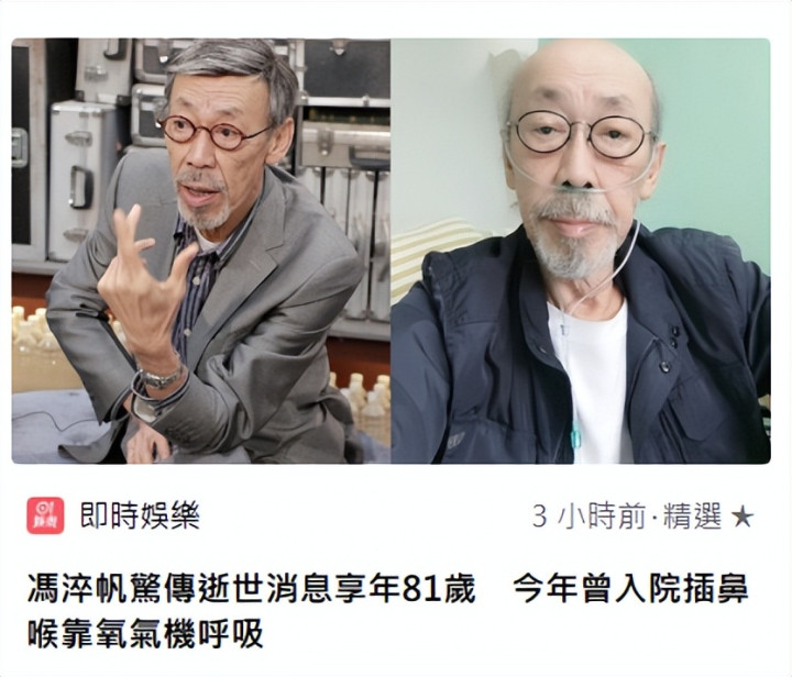令人唏嘘的是,香港演艺圈近期失去了多位艺人,包括许绍雄、甄志強,还有台湾歌手坣娜,冯淬帆的去世,更是给演艺圈蒙上一层悲伤的阴霾。